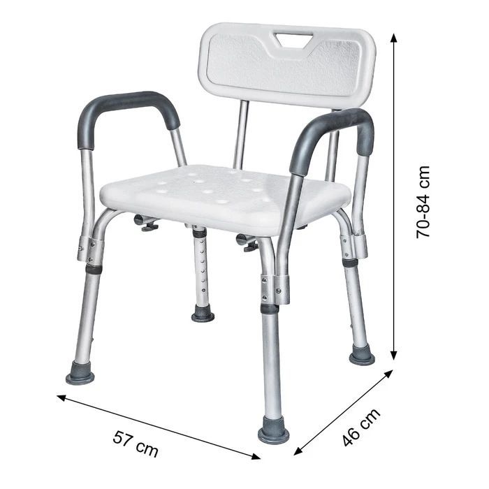 Scaun pentru baie cu suport pentru brațe, ajustabil, alb, 57×46×70/84 cm
